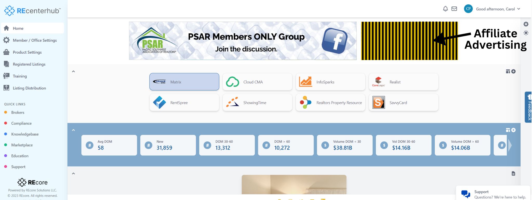 - CRMLS rotating banner ad located at the top of the MLS Dashboard linked to your URL